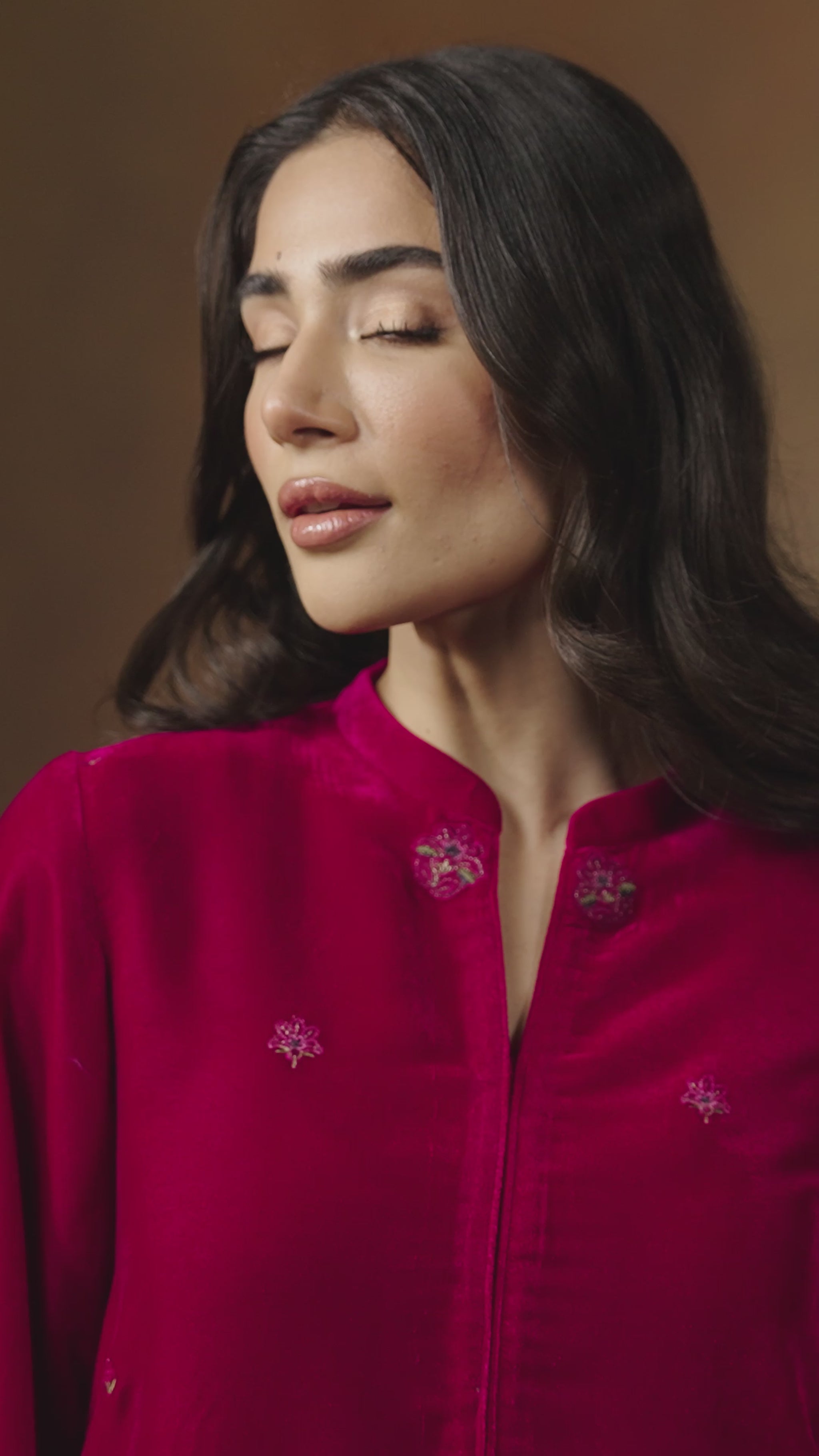Like the soft glow of a rose at dusk, the Rose Ember ensemble exudes warmth and elegance. The rose-toned velvet shirt, adorned with delicate floral embroidery along the neckline and cuffs, drapes effortlessly in a relaxed, straight-cut silhouette. Paired with matching velvet trousers, subtly embroidered at the hem, this ensemble radiates refined beauty, seamlessly blending comfort with grace.